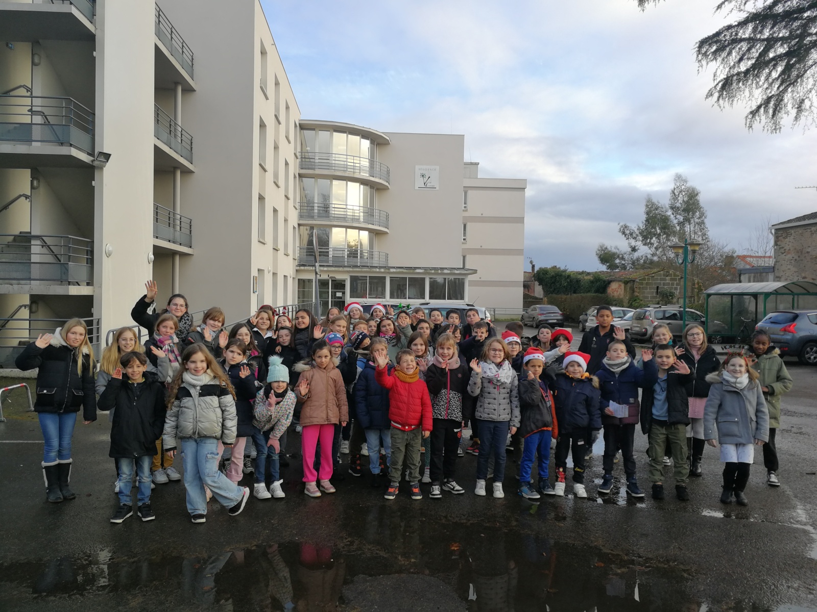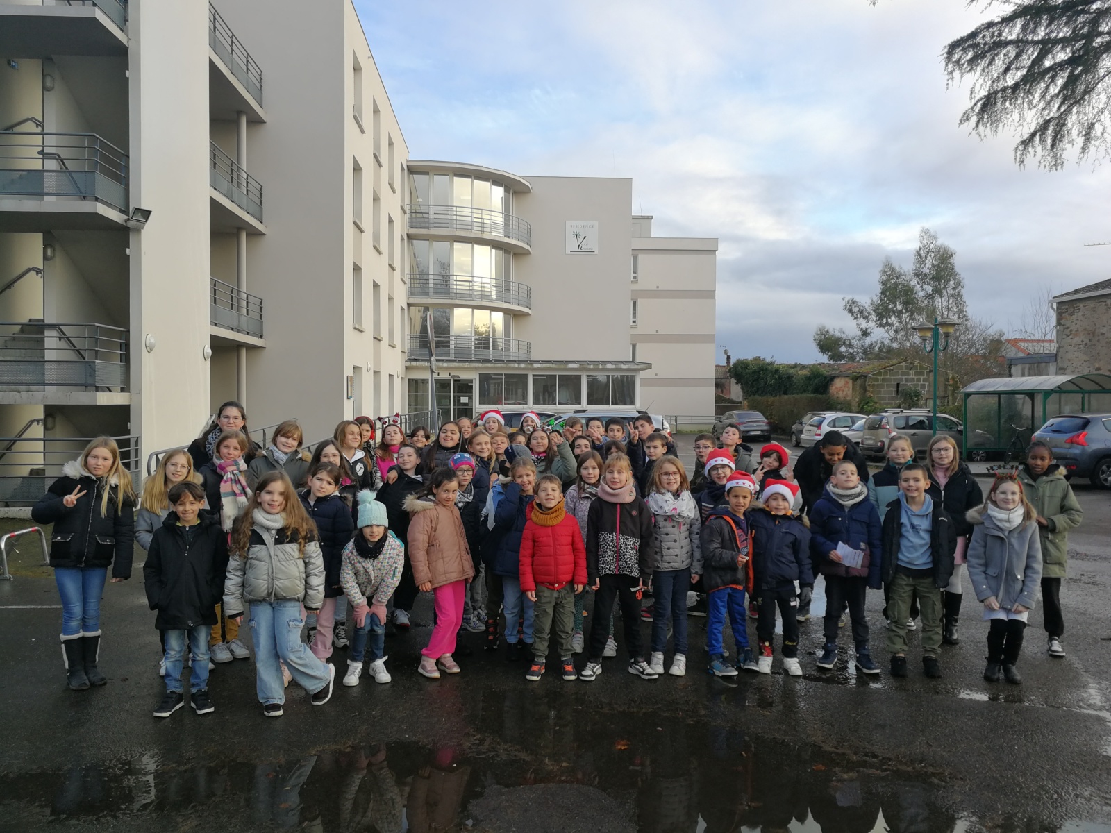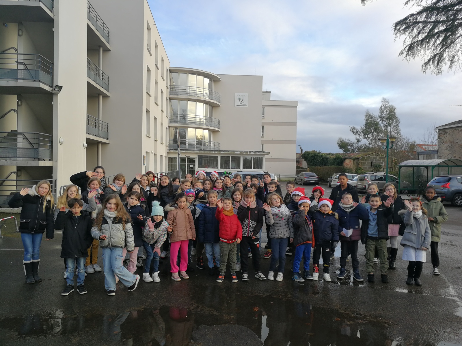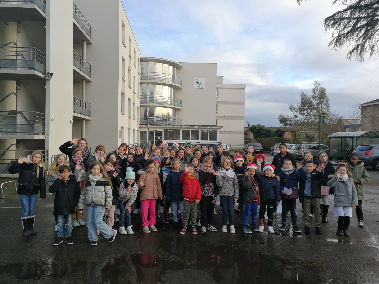 Le dernier jour de l’année, les CM2 et les CE1 sont allés porter des cartes de vœux pour nos aînés.