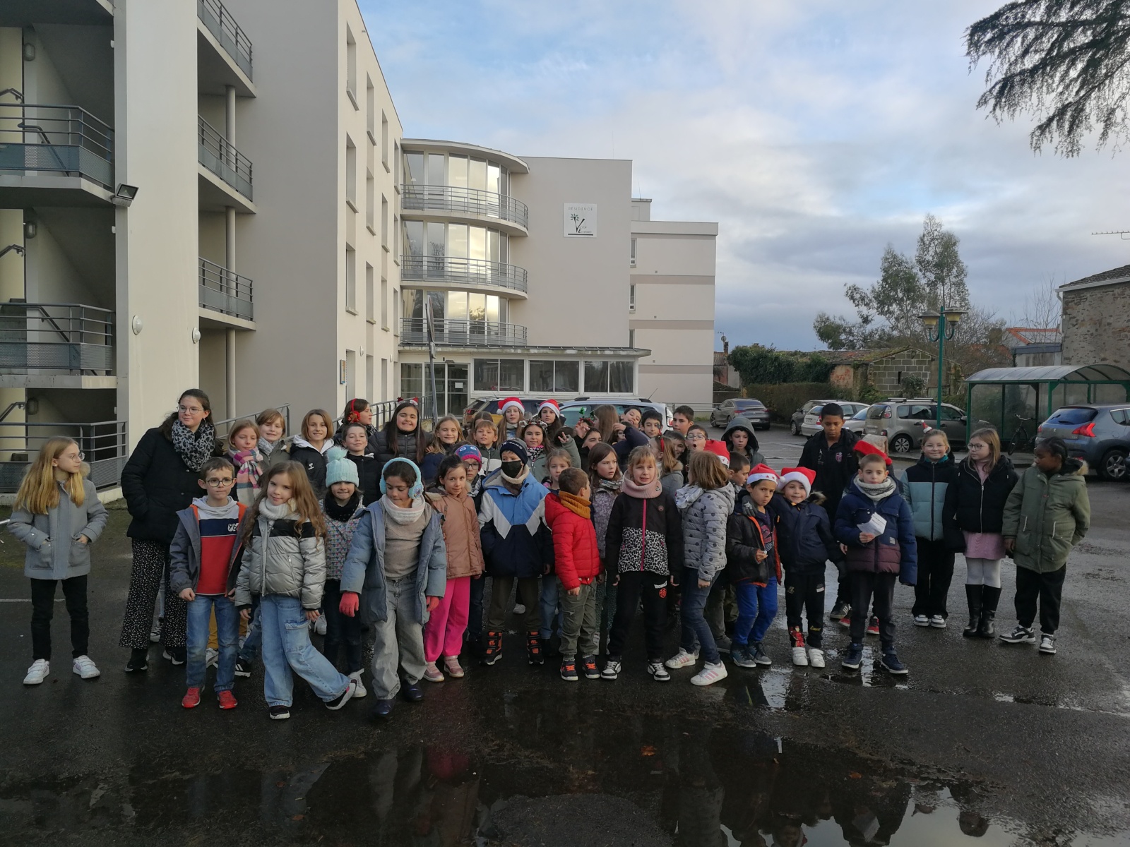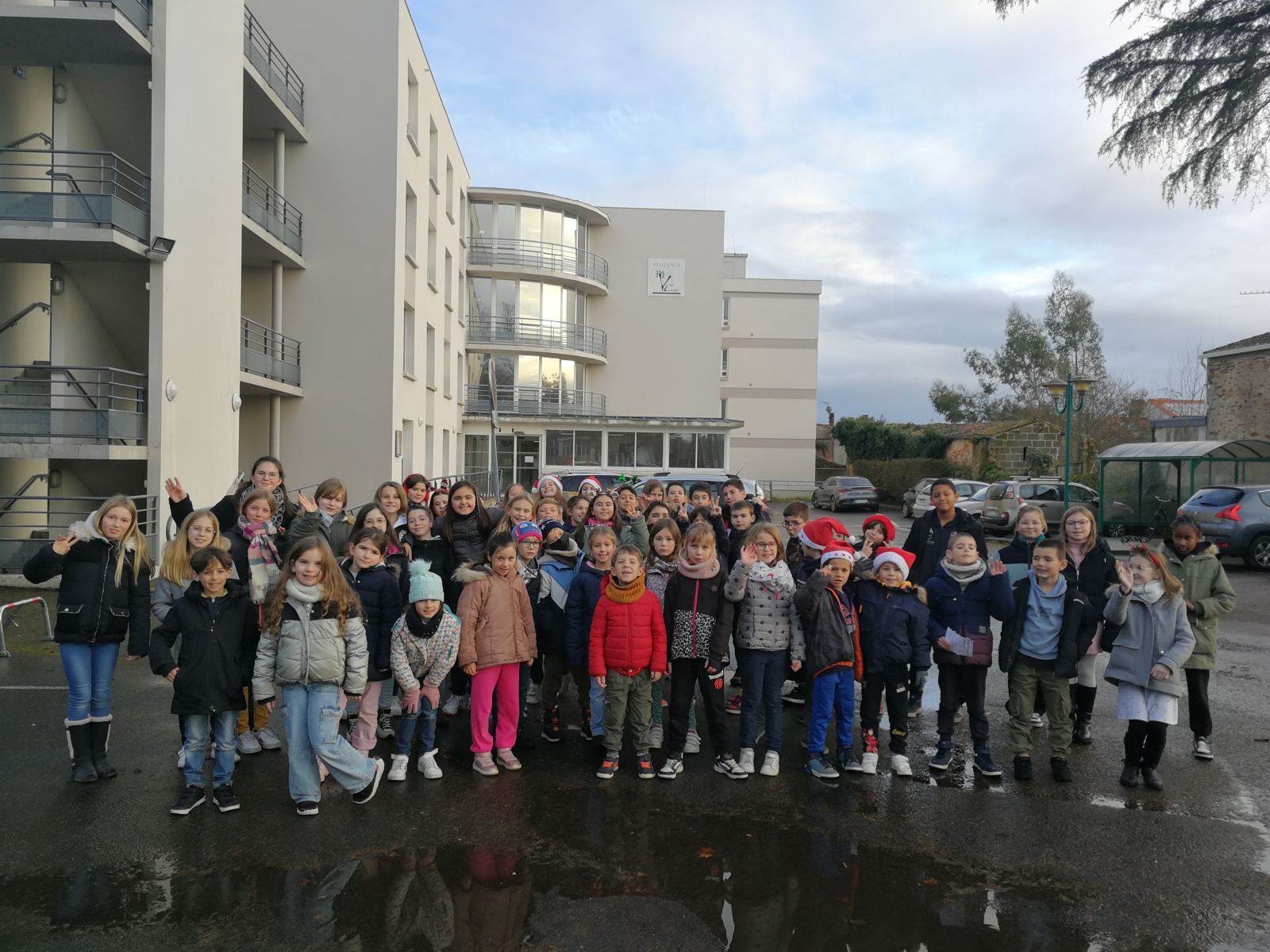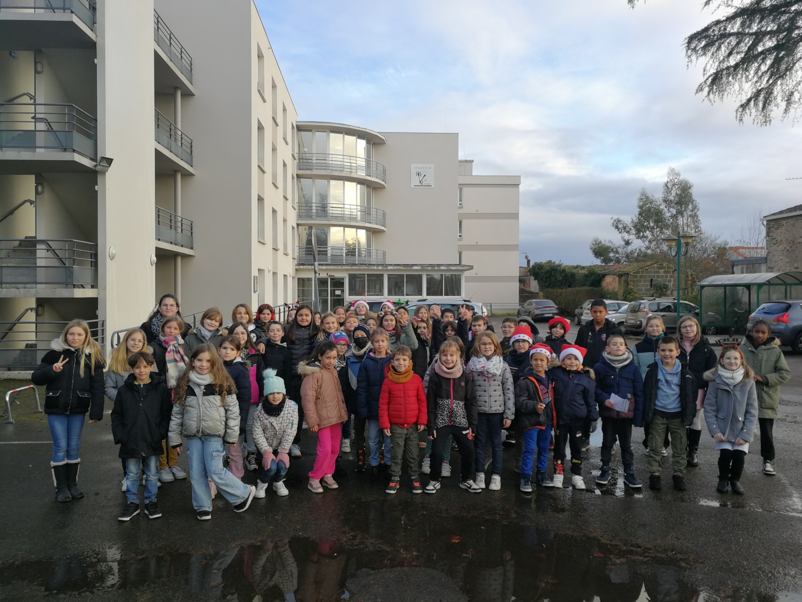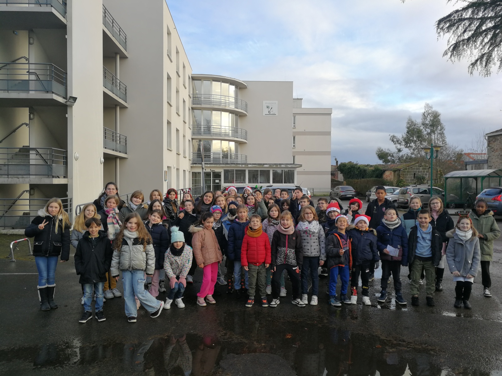 Le dernier jour de l’année, les CM2 et les CE1 sont allés porter des cartes de vœux pour nos aînés.