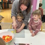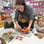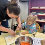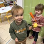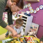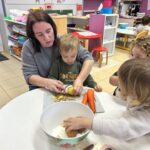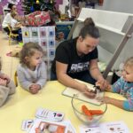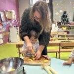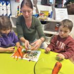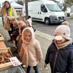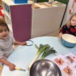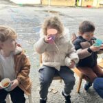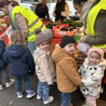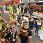 En novembre, les élèves de Petite Section ont mené un projet soupe autour de l’album La soupe aux cailloux de Christina Dorner. À la suite de la lecture de l’album, nous sommes allés au marché afin d’explorer un lieu proche de l’école. Cette sortie a été l’occasion de travailler le vivre ensemble : attendre son tour, dire bonjour et s’il vous plaît, échanger avec les commerçants. Les élèves ont également pu nommer les légumes, les compter, payer.