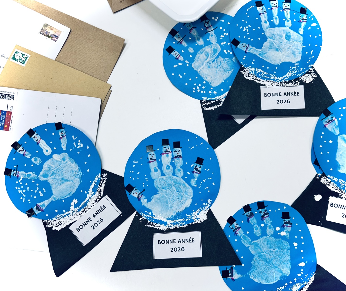 Une fois les cartes terminées, nous les avons soigneusement glissées dans une enveloppe, adressée à une personne que nous aimons beaucoup. 💌