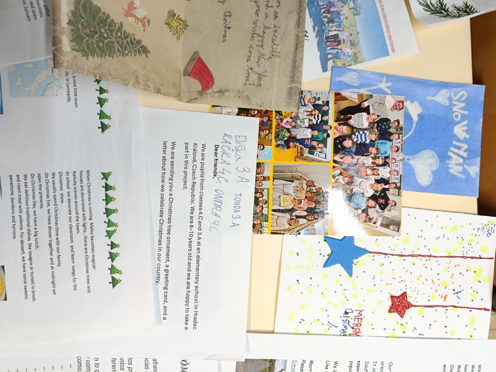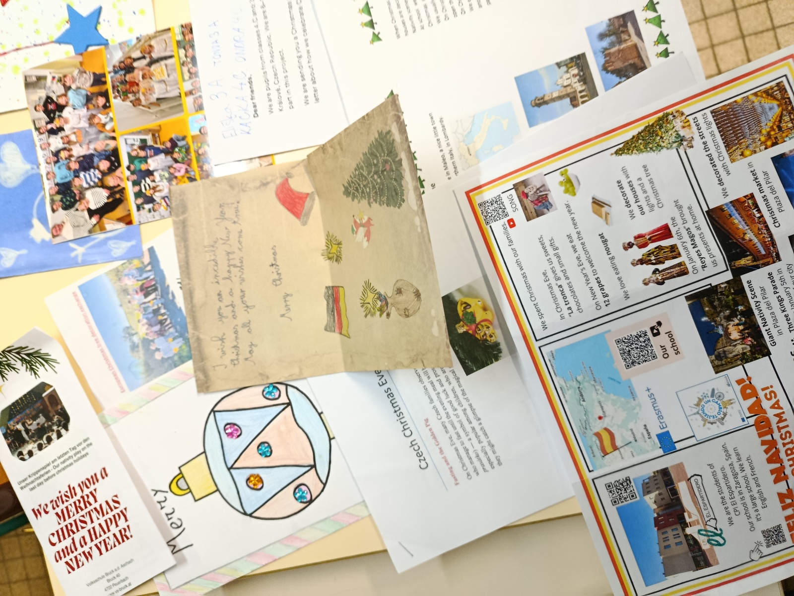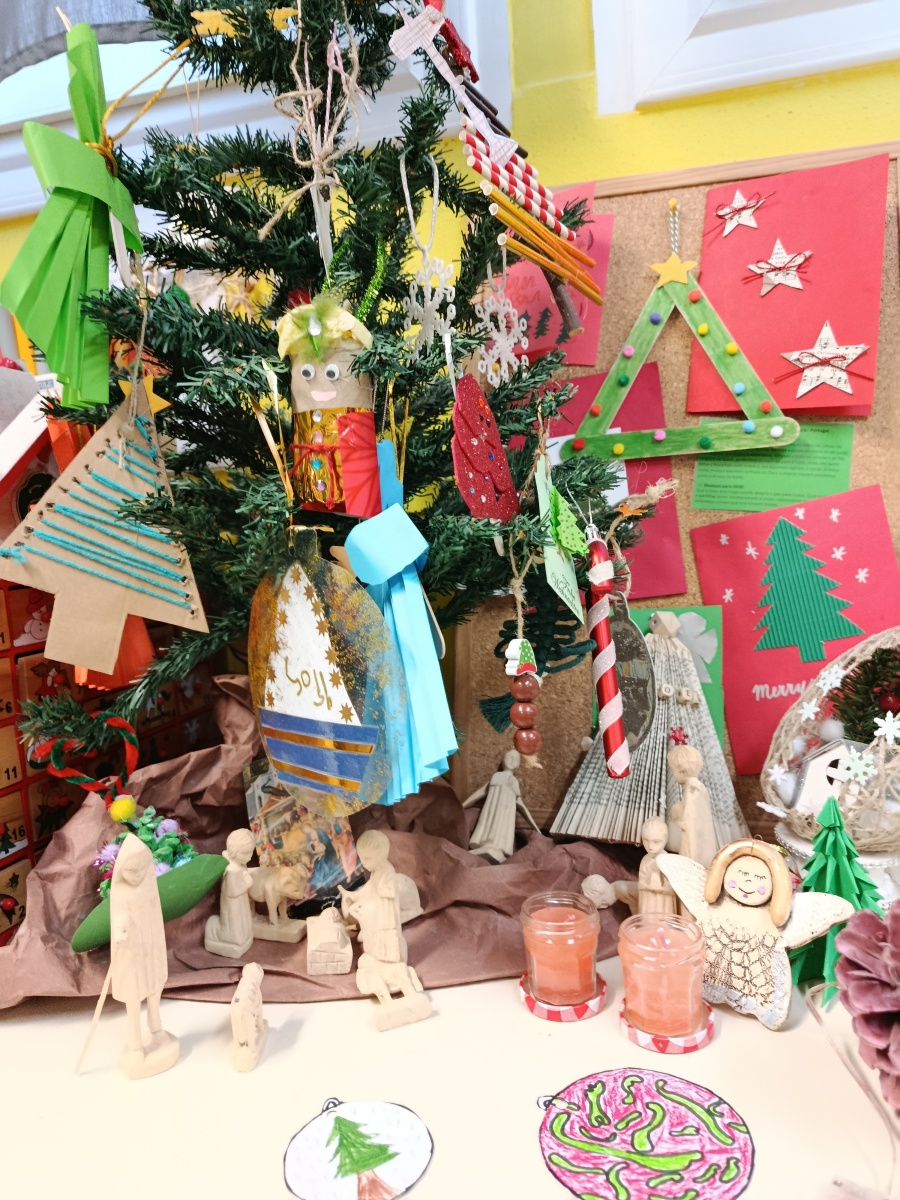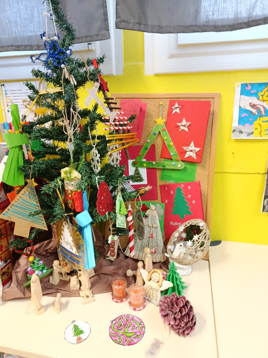 La classe a participé à un échange de décorations de Noël avec 24 écoles européennes. Nous avons envoyé une lettre à chaque école et reçue de chaque école. Ces décorations nous ont permis de découvrir les cultures de plusieurs pays et de lire les messages en anglais.